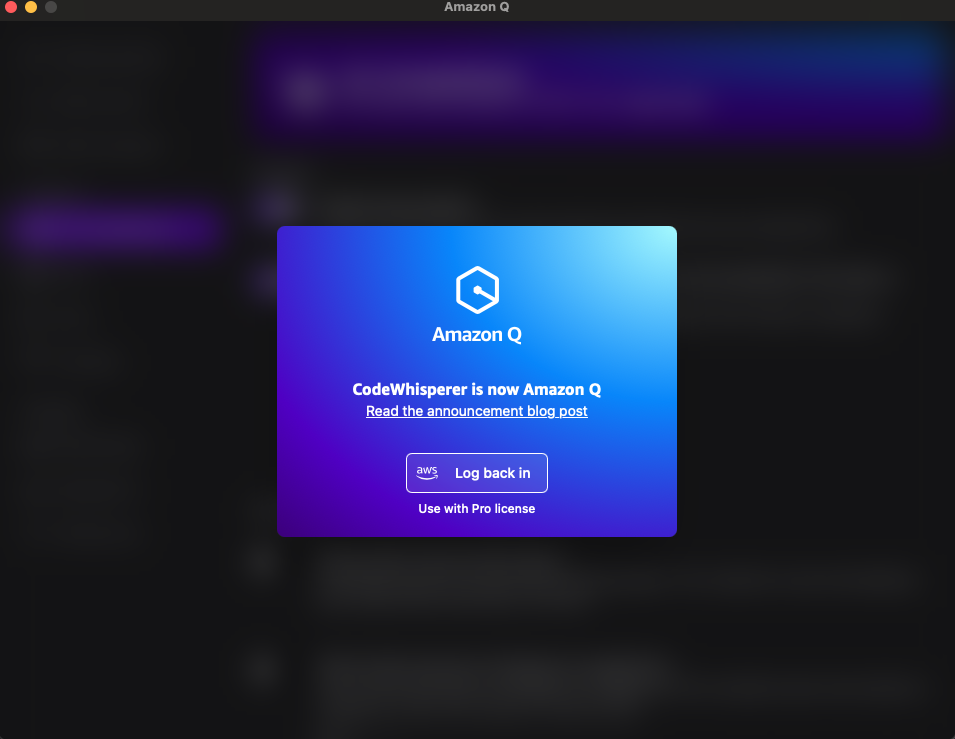 2. 설치된 Amazon Q를 실행하고 로그인을 진행해야 합니다.