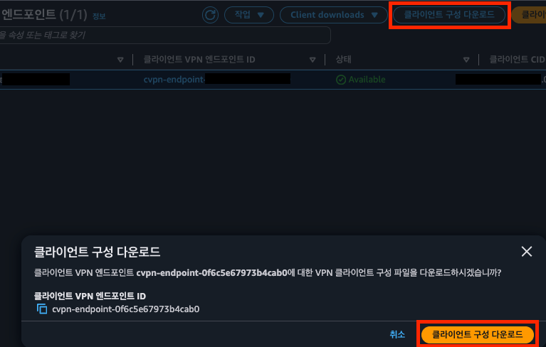 AWS Client VPN이 구성이 되어있어야 합니다.