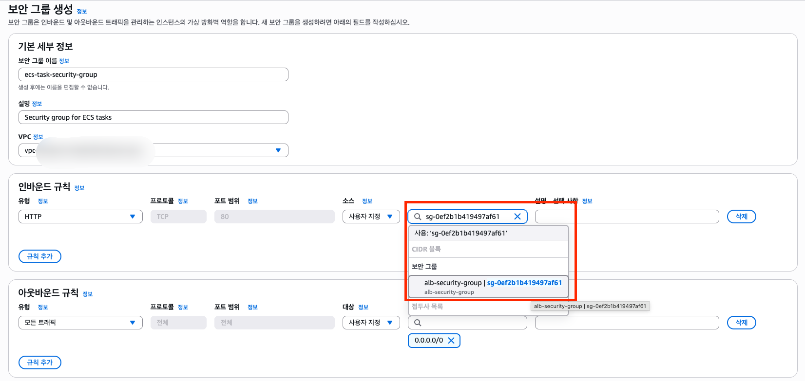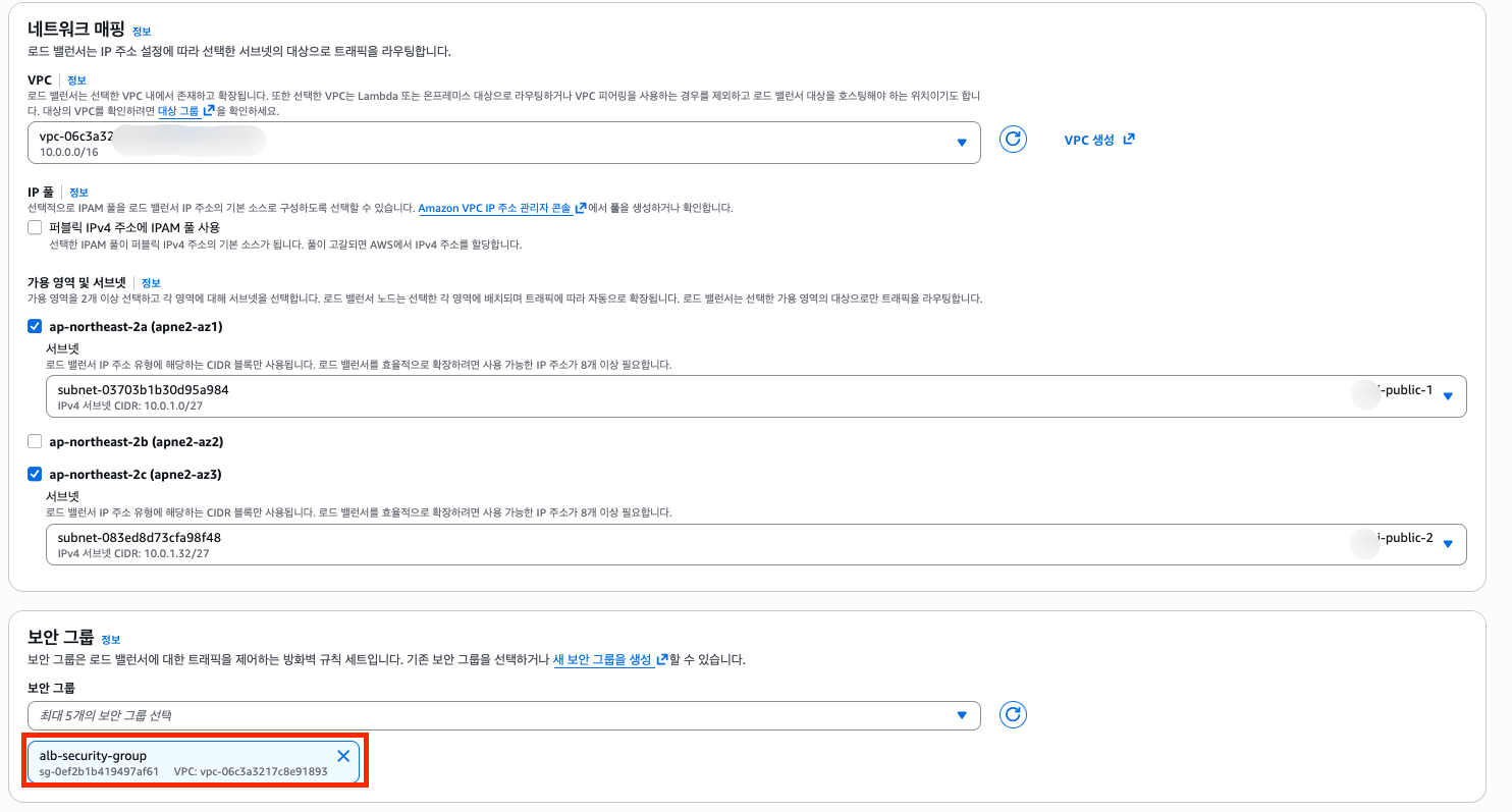 Security group for Application Load Balancer - VPC: 사용할 VPC 선택