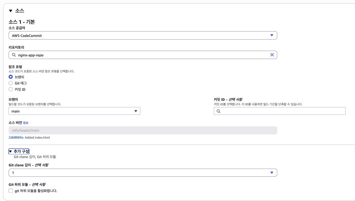- 소스: CodeCommit (