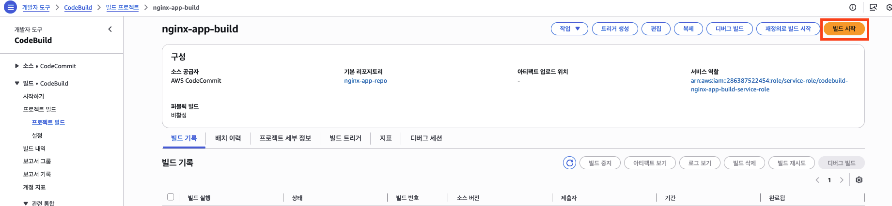 nginx-app-repo,main) - 빌드: CodeBuild (