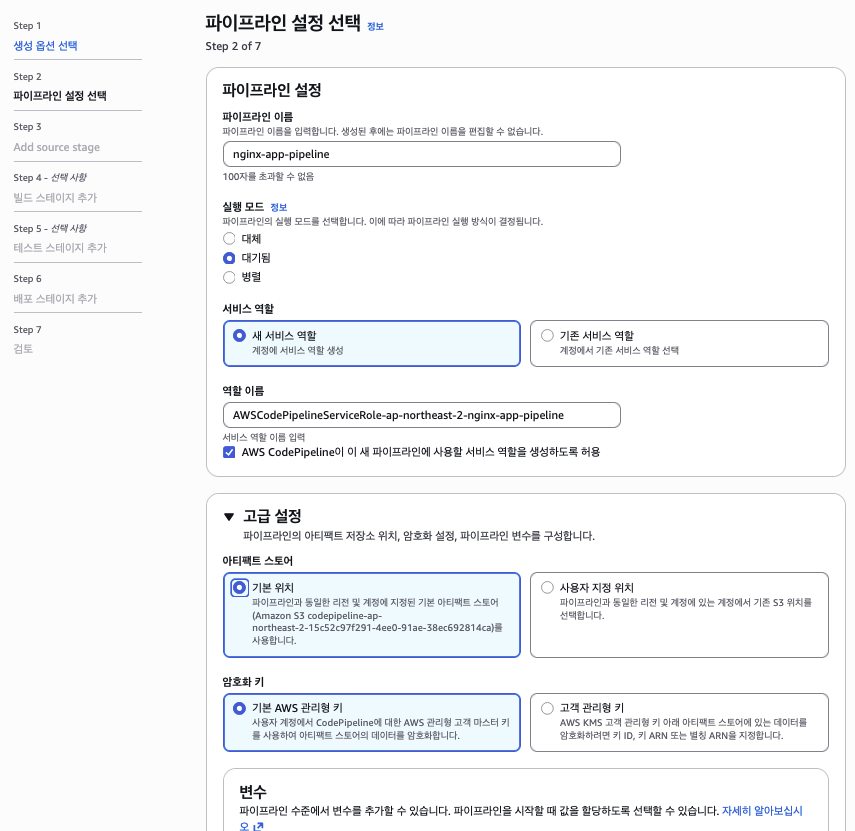 - CodePipeline 기본값 선택