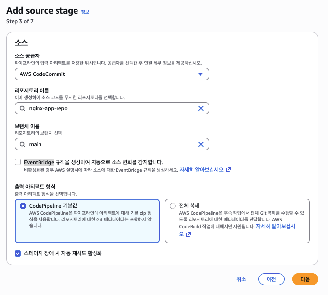 - Step 8: CodeCommit 리포지토리 생성