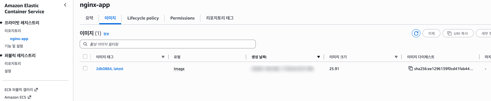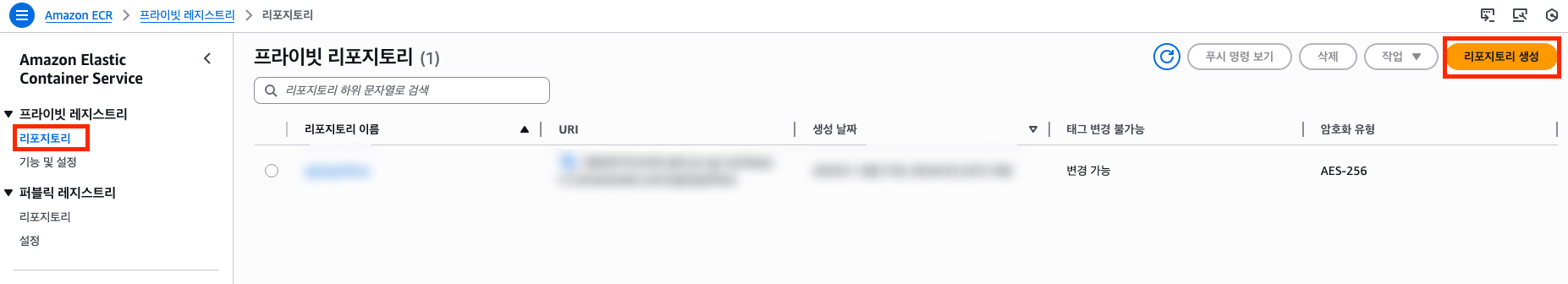 - AWS 콘솔에서 Amazon ECR 서비스로 이동