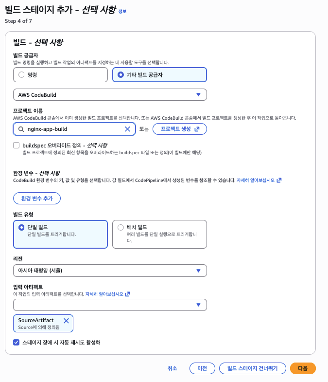 - Step 9: CodeBuild 프로젝트 생성