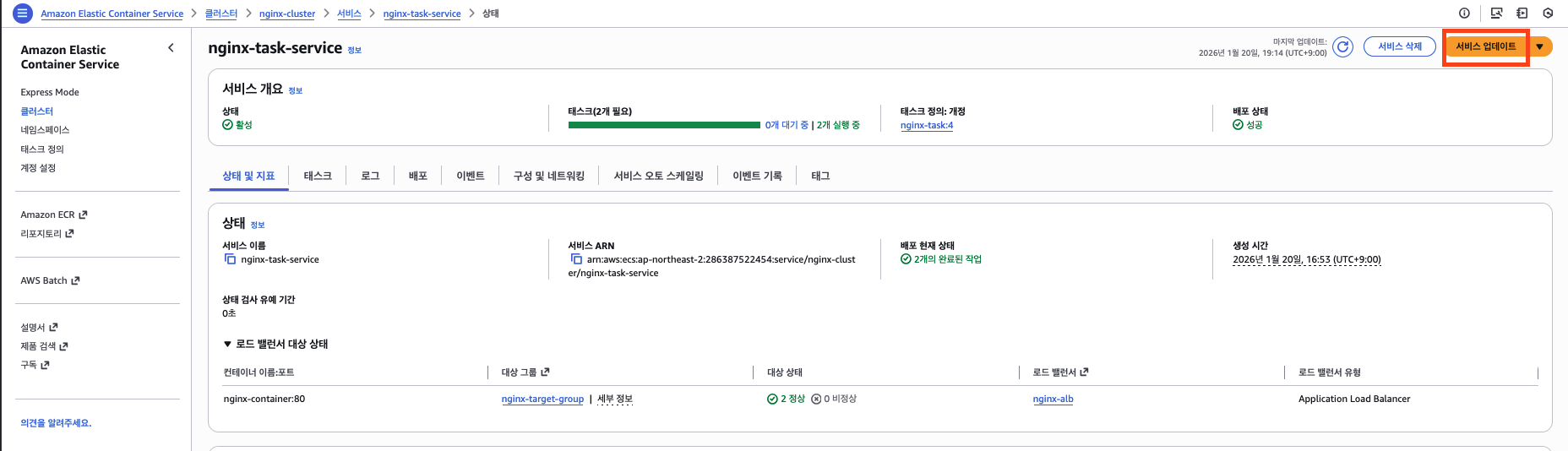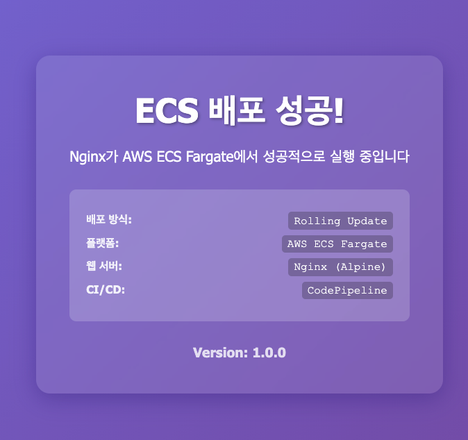 http://nginx-alb-1234567890.ap-northeast-2.elb.amazonaws.com - "ECS 배포 성공!" 페이지가 표시되는지 확인