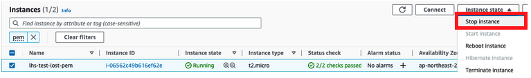 그 후 인스턴스를 중지 시켜줍니다. (종료가 아닙니다)