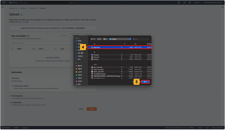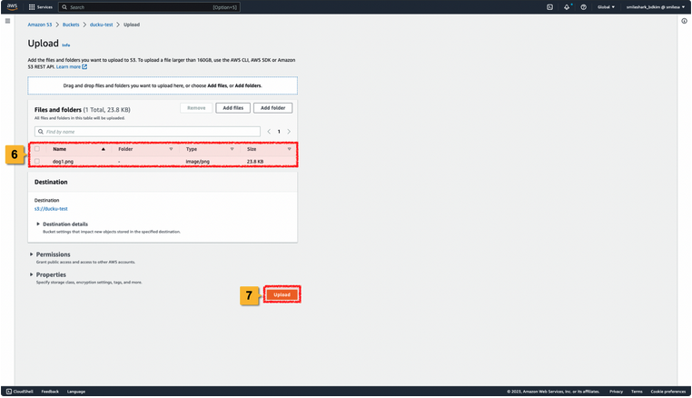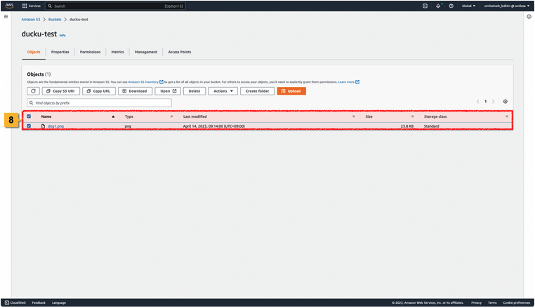 8. 정상정으로 지정한 Amazon S3 Bucket에 선택한 파일이 업로드 된 것을 확인할 수 있습니다.