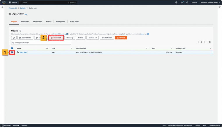 1. 다운로드 할 파일(오브젝트)를 선택합니다.