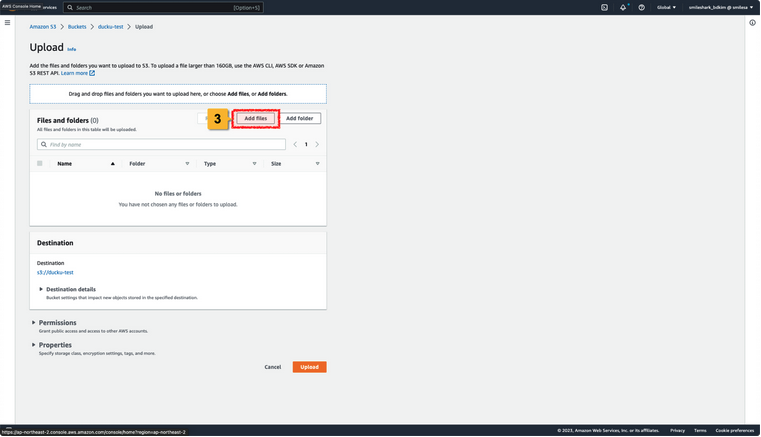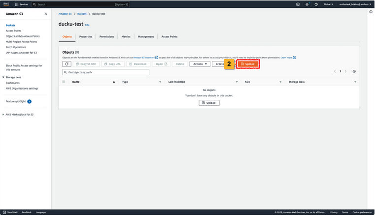 1. 파일을 업로드 하려는 Amazon S3 Bucket을 선택합니다.