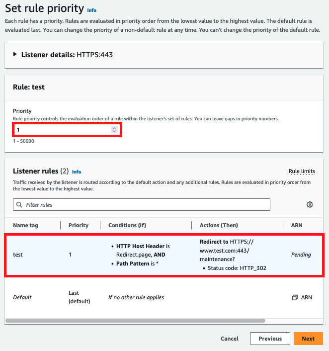Set rule priority의 경우, 가장 낮은 숫자로 설정해줍니다.
